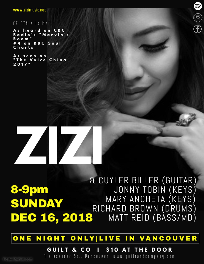Come down to the iconic Guilt & Company in Gastown, Vancouver and catch Zizi doing an early show with her friends from 8-9pm. An hour of hard-hitting and sultry original music (and covers), embracing neo-soul, 90's influenced R&B pop and dancehall.