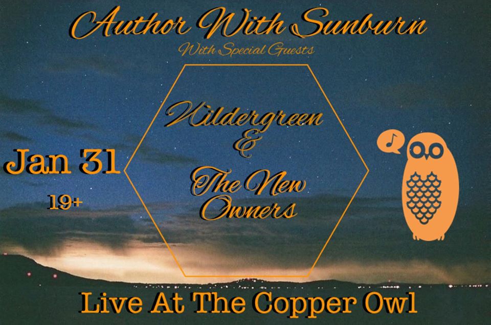 Author with Sunburn are sharing the stage with Wildergreen, and The New Owners on the evening of January 31st. The three bands are from Victoria, and their roots lie within our west-coast culture. Their objective is simply to make you dance.