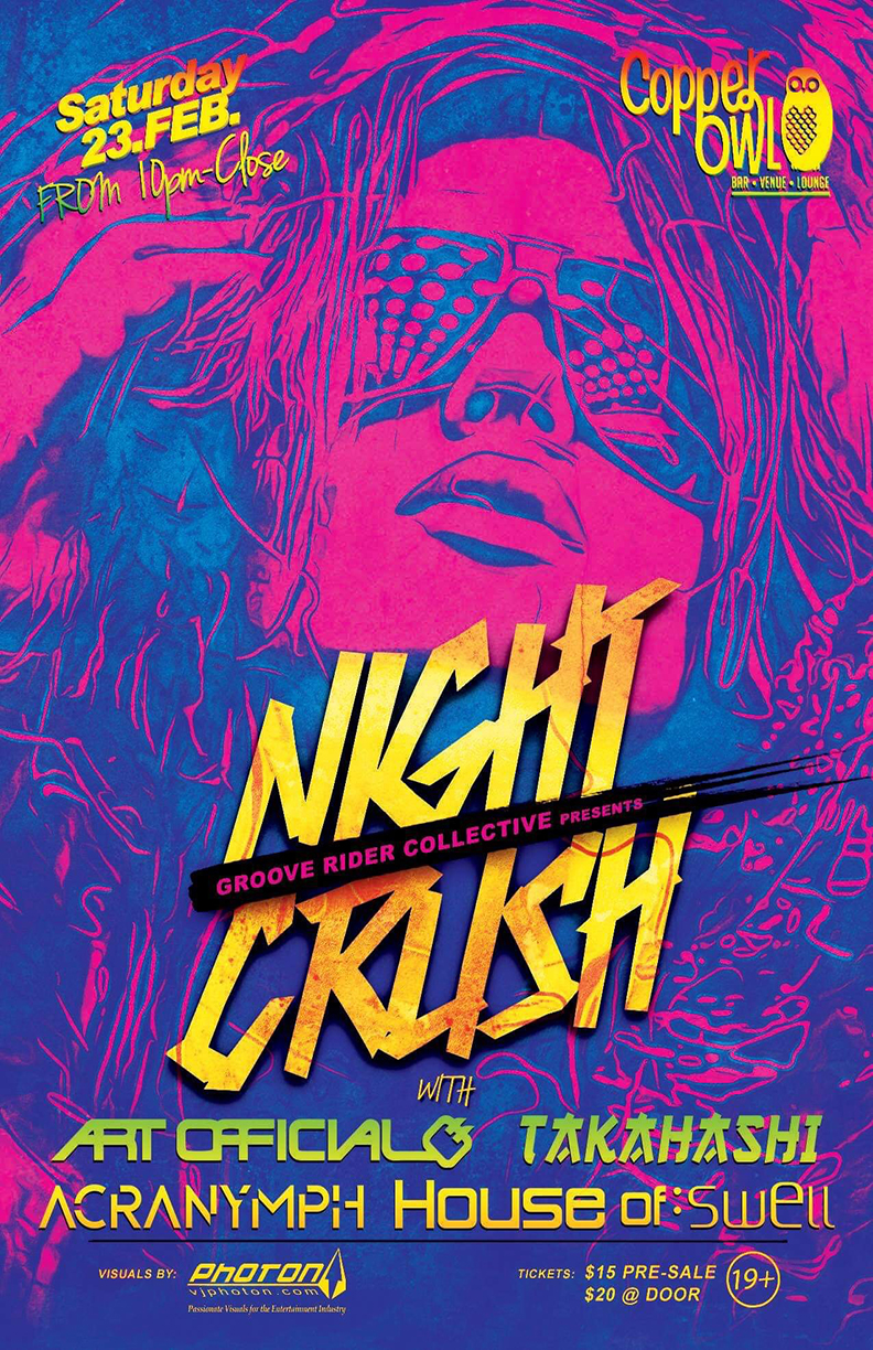 NIGHT CRUSH: ARTOFFICIAL, TAKAHASHI, ACRANYMPH, House of Swell, PHOTON VISUALS @ Copper Owl Feb 23 2019 - Dec 22nd @ Copper Owl