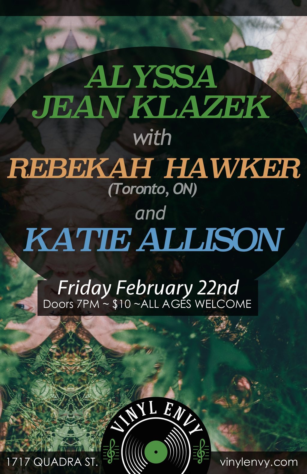 Vinyl Envy is very proud to present another all-ages folk show featuring: Aly...