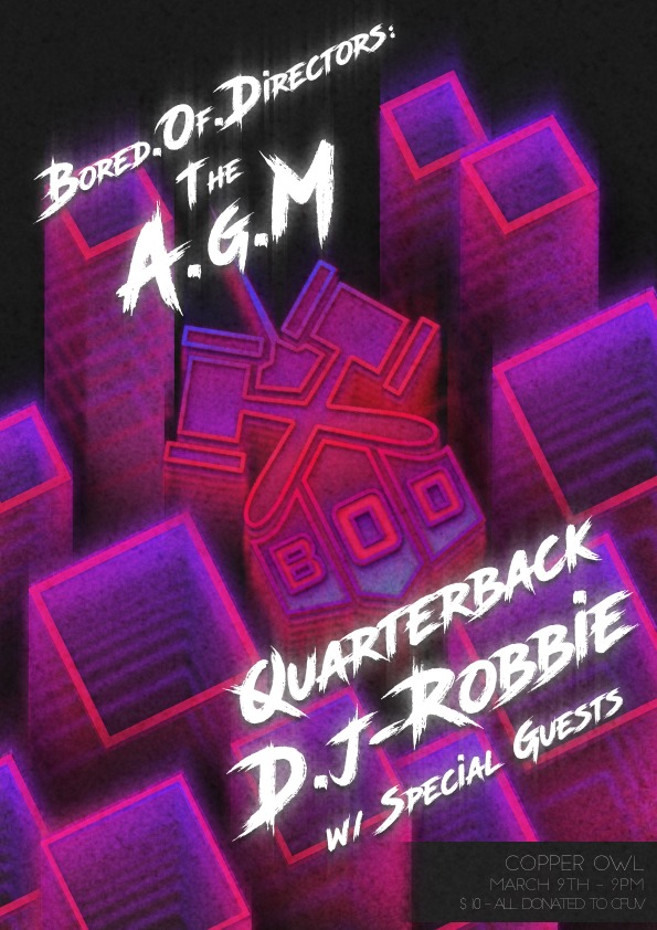 BoD AGM • CFUV Fundraiser: Quarterback, DJ Robbie