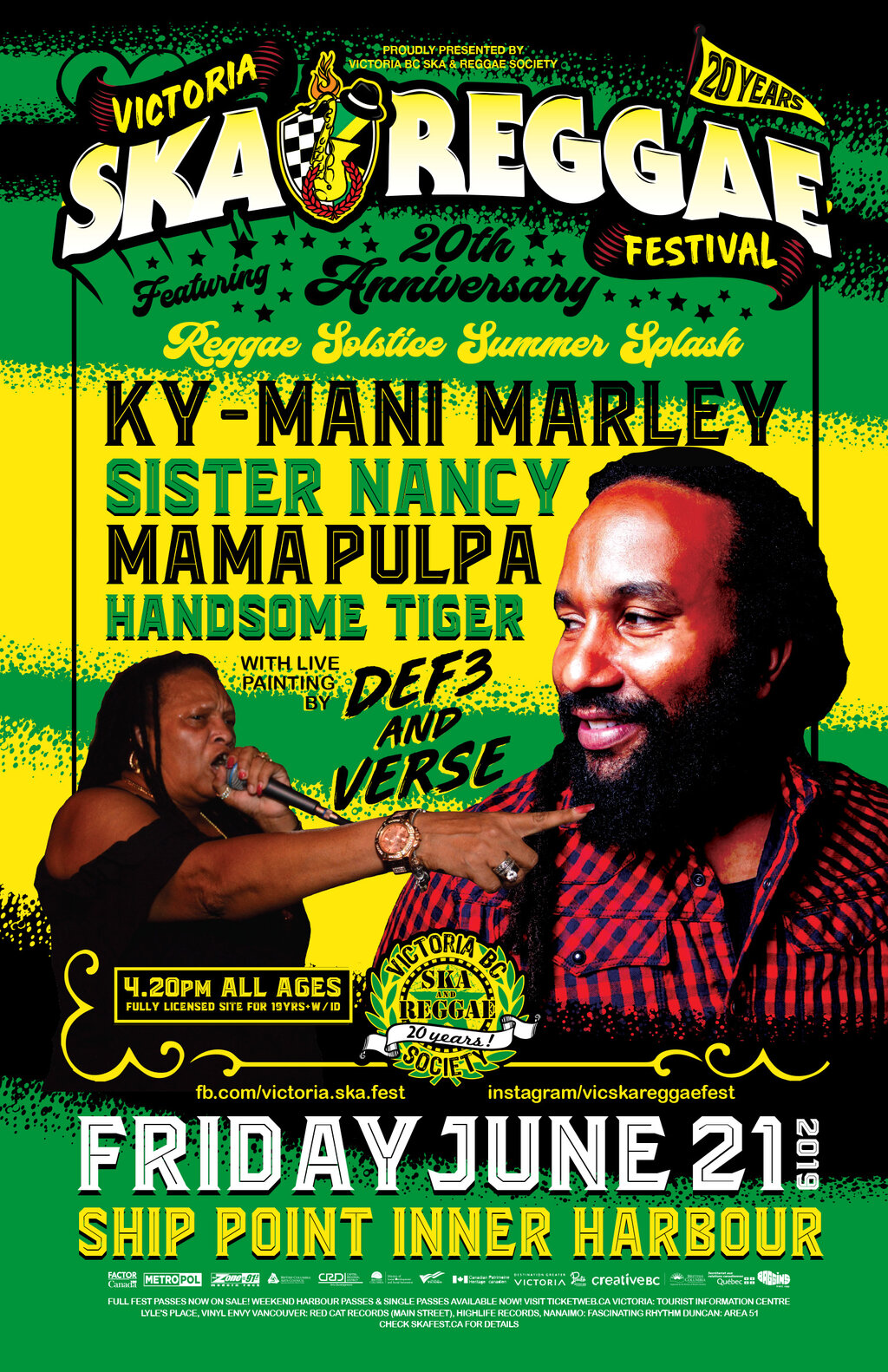 As luck would have it, Victoria's 20th Annual Ska & Reggae Festival falls right around this years Summer Solstice. And what goes better with a long, sunny day than reggae music? As we prepared celebrate our 20th year of bringing the best global riddims to the Massive, we thought back to some of the most legendary Ska & Reggae Fest shows, the ones that really left an impression – and we couldn't think of anyone who made a splash like KY-MANI MARLEY did in 2011. Playing to a capacity crowd of over 1200 people (With dozens more being denied entry), Marley gave an unforgettable and exhilarating performance, radiating the true joy associated his family name. one foot planted in the reggae traditions that his father helped build and another foot planted in the sounds of reggae musics future. Carrying the torch of the royal family of reggae music, Ky-Mani has been releasing world-class reggae for more than two decades, low-key becoming one of the most prolific and consistent members of the ever-expanding Marley family tree. On top of his own work, Ky-Mani has created global hits with other modern reggae heavyweights like Proteje and Gentleman. A link to reggae's past and a leader of reggae's present, Ky-Mani Marley's return to Victoria, under the sun, bringing in the Summer Solstice is going to be something really special for music lovers of all kinds.
