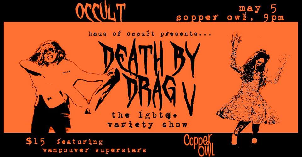 Death by Drag V : Featuring Special Guests: Madame Lola   (YVR), BOSS  (YVR), Henrietta Dubét , Ada Rawl, KIM UNION (Hannah), Honey Dewme (Rick), Fruit Bat  (David), Jelly Baby (Eva), Poptart  (Ezra) @ Copper Owl May 5 2019 - Dec 22nd @ Copper Owl