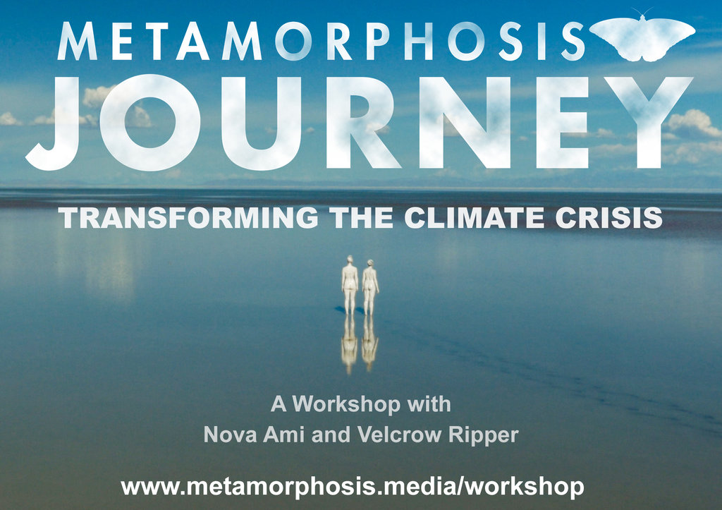 Metamorphosis Journey is an experiential workshop that explores transformation in the face of planetary emergency. Lead by the Metamorphosis documentary directors, and certified coaches, Nova Ami and Velcrow Ripper. Participants explore the pyschological, emotional and spiritual dimensions of the climate crisis, as well as developing personal action steps towards finding hope, meaning and solutions. The participant moves through the stages of Chrysalis, Crisis, Catharsis, Symbiosis, and Metamorphosis, personalizing this arc, and applying it to their own lives. Learn to tap into our ‘Protean Self’- that part of us that is open and willing to change. Short films, representing each of the stages, are integrated throughout the workshop, along with guided meditations, movement, and break-out group exercises.