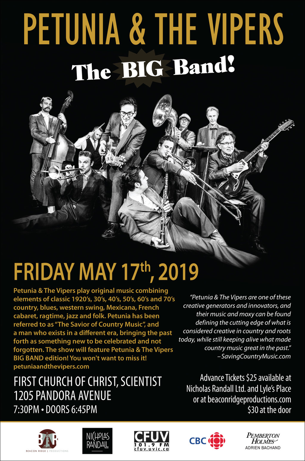 Physical tickets at: Lyles Place, Nicholas Randall Ltd., 2180 Oak Bay Avenue