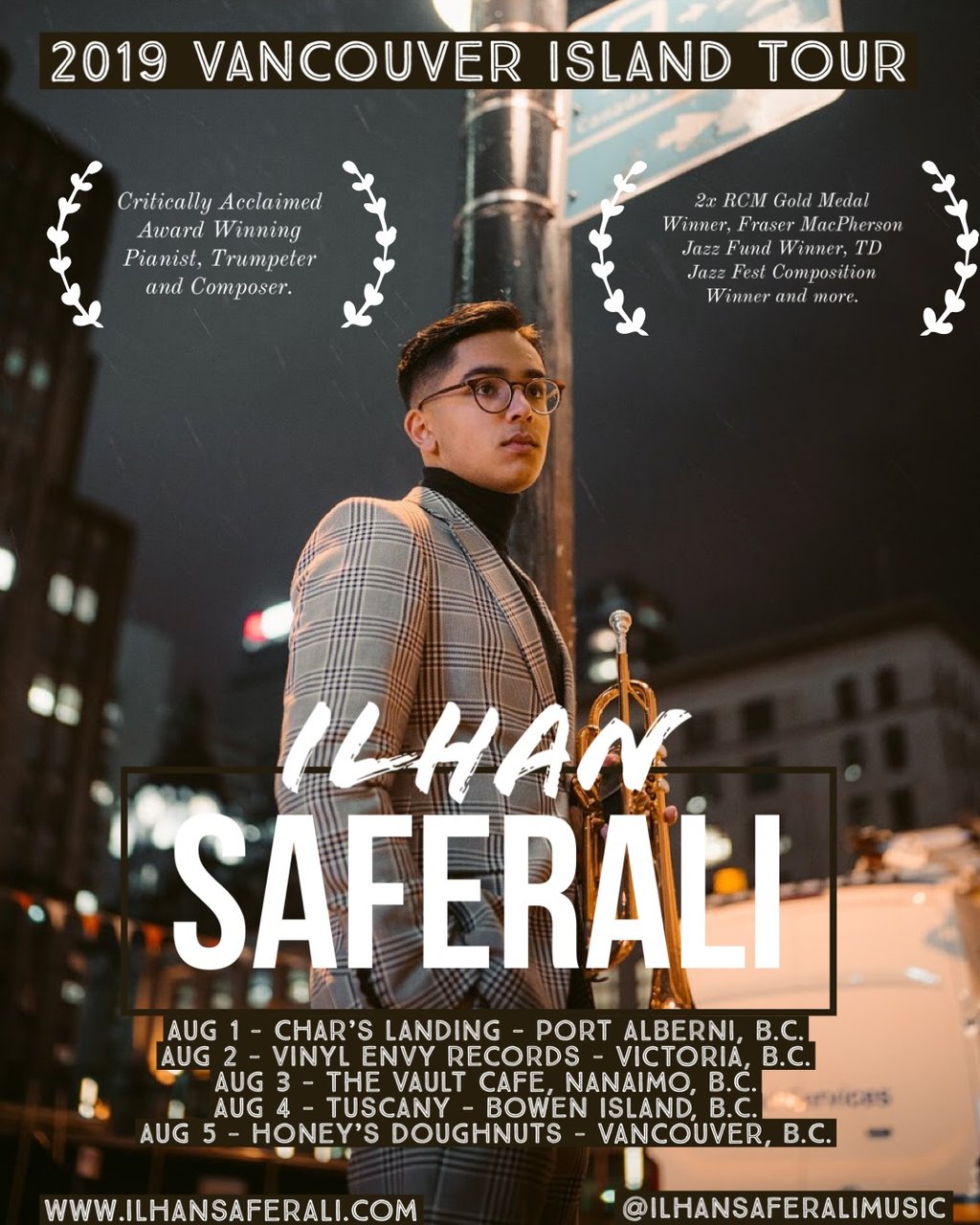 Ilhan Saferali is starting young at getting his name out on the jazz scene. Ilhan, playing trumpet and piano, has accomplished a lot for himself as a young musician. Ilhan has played with Grammy award-winning musicians such as Chucho Valdes and Kamasi Washington, and has worked with the David Suzuki Foundation for their ECOmusicology project. Ilhan was recently interviewed about his career and his music on CBC/Radio-Canada. Ilhan’s playing ability is very versatile; playing Jazz, Rock, Funk and Latin music. Ilhan's piano style takes from classic piano players such as Bill Evans and Oscar Peterson and is heavily influenced by modern jazz players such as Brad Mehldau.