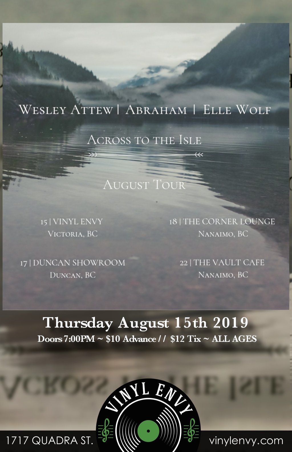 Across to the Isle Tour: Wesley Attew  (Vancouver, BC), Abraham (Victoria), Elle Wolf (Vancouver, BC) @ Vinyl Envy Aug 15 2019 - Dec 22nd @ Vinyl Envy