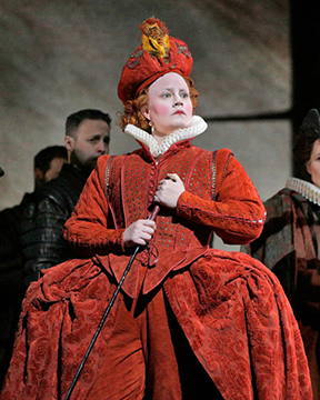 Soprano Diana Damrau, following her triumph as Violetta in last season’s new production of Verdi’s La Traviata, stars as the martyred Mary, Queen of Scots, in Donizetti’s bel canto showcase. Star mezzo-soprano Jamie Barton is her imperious rival Queen Elizabeth I, and the silken-voiced tenor Stephen Costello is the noble Earl of Leicester. Maurizio Benini conducts Sir David McVicar’s handsome production.