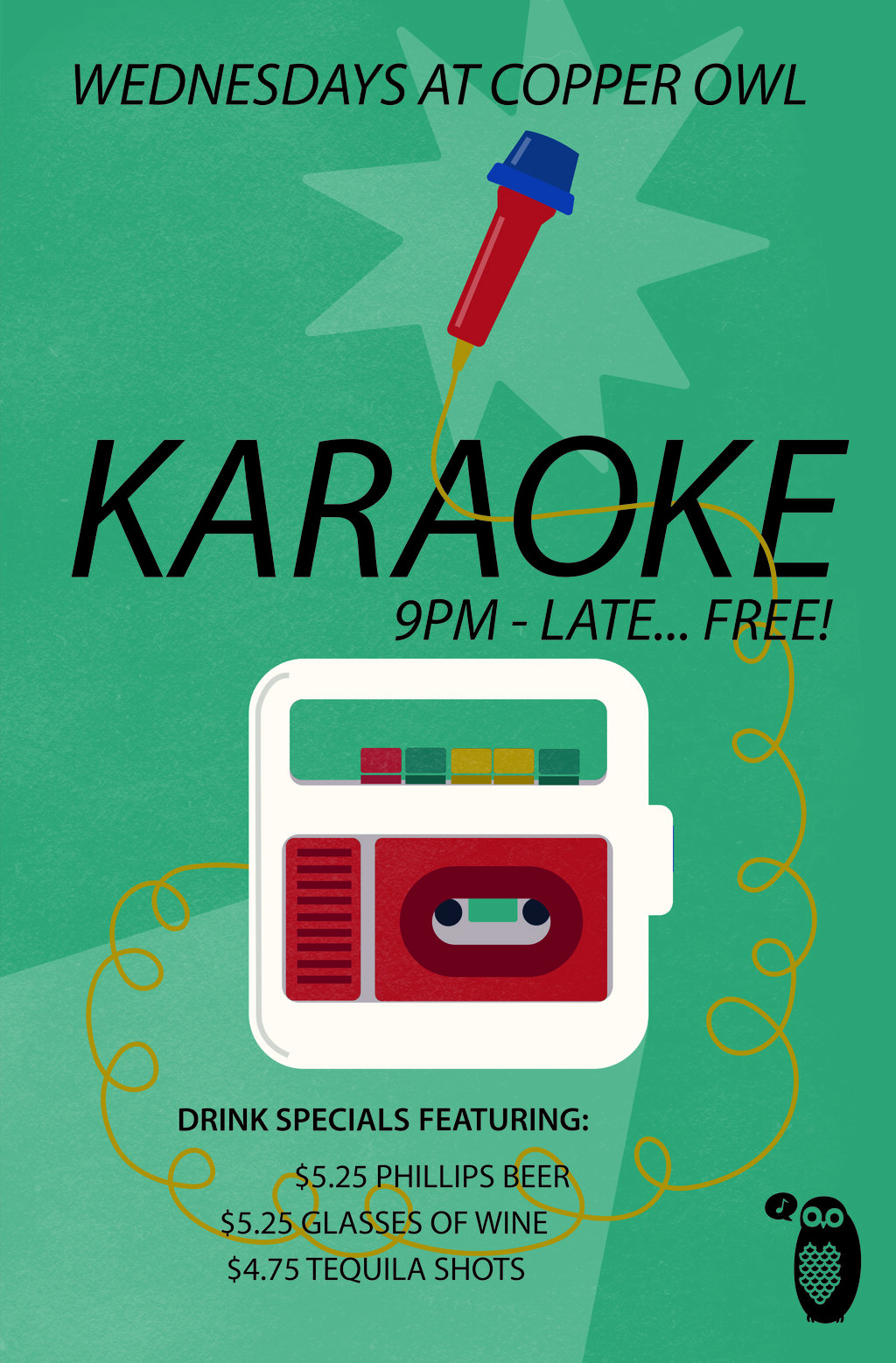 Karaoke Wednesdays at Copper Owl! Tens of thousands of songs to choose from ...