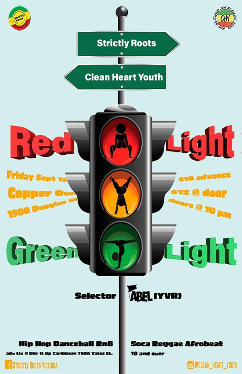 Strictly Roots & Clean Heart Youth present Traffic light party. If you never come to one of our montly mash event dont miss out on a booty shaking, wast twerking night. We are askin you to dress in one of the famous traffic light colours. Let's make this one of our colourful event ever. DJ of the nigh is selector Abel spinning for the first time on our stage. Selector Abel is no stranger in mashing up event with is mix of reggae, dancehall, afro beat soca, hip hop and more, coming from Vancouver with only to hit you with music all night long.