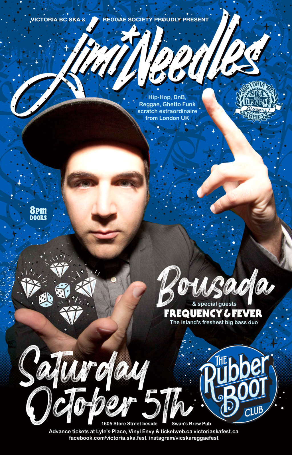 Scratch-master extraordinaire. Jack of genres. UK bass maestro and party-rocking legend JIMI NEEDLES makes his return to Victoria! The last time the Ghetto Funk impresario touched down in Victoria, he made his Canadian debut as part of Victoria Ska & Reggae Fest XIX where he set Lucky Bar on fire with an unforgettable set that had us all dripping with sweat by the end. In the time he's been away, his reputation as a world-class DJ and producer has only grown, with festival appearances and headline gigs all around Europe. Every Jimi Needles show is a journey through groove – drum 'n' bass, hip-hop, future funk, disco, reggae, breaks – and we can't wait to see what he brings to Victoria for his triumphant return!