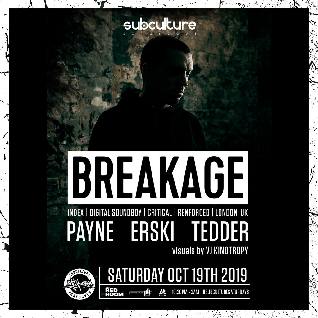 Breakage (UK) at SUBculture Saturdays @ The Red Room Oct 19 2019 - Dec 21st @ The Red Room