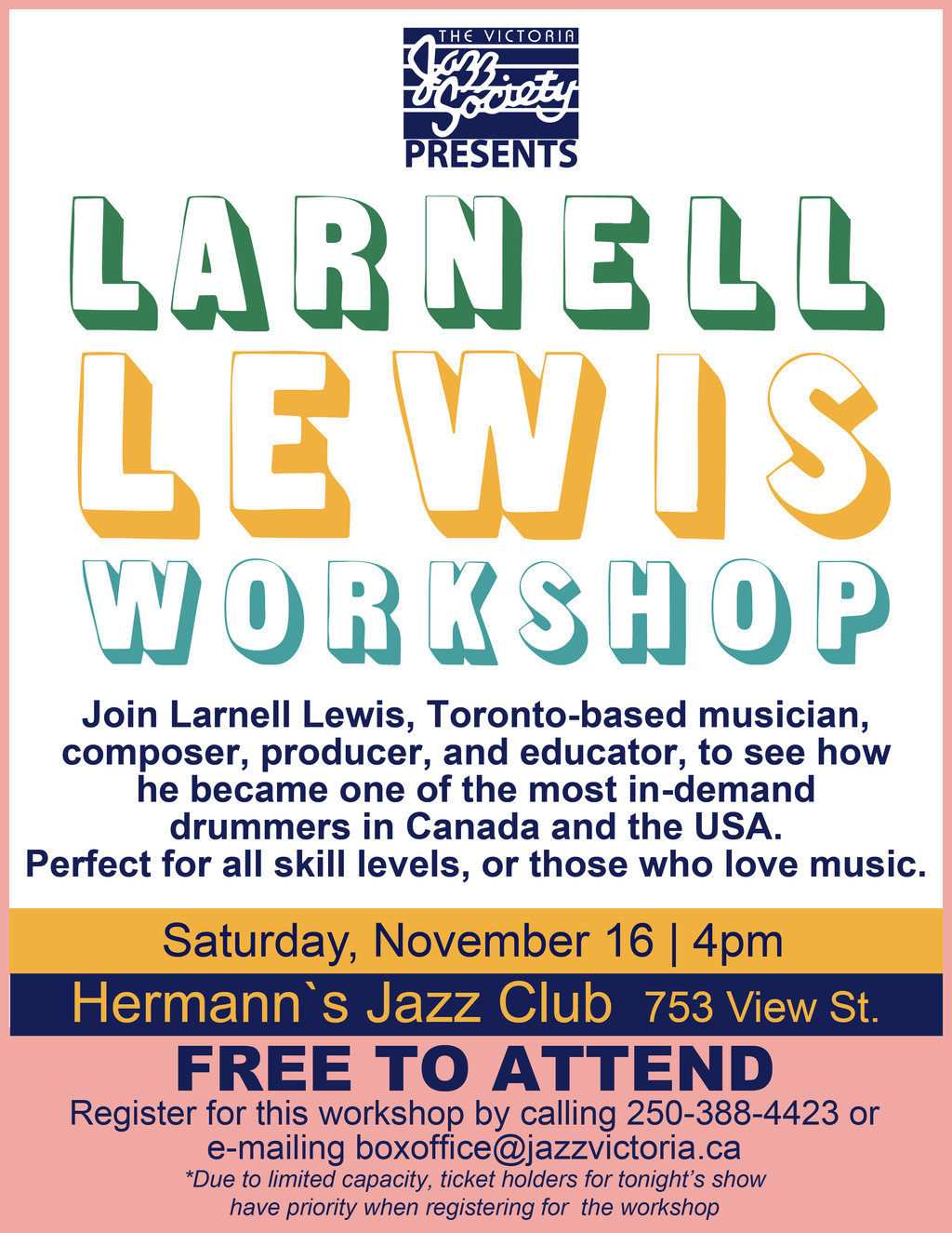 Join Larnell Lewis, Toronto-based musician, composer, producer, and educator, to see how he became one of the most in-demand drummers in Canada and the USA. Perfect for all skill levels, or those who love music.