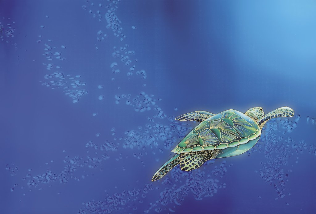 Across the Pacific showcases the work of Australia-based artist, Kim Michelle Toft. A marine artist, author, illustrator and publisher, Toft has produced several books that introduce children to the wonders of the fragile ocean ecosystem. Her children’s books depict vibrant underwater worlds hand-painted on silk, and this short and sweet exhibition is a magical and meaningful introduction to her wildlife work.