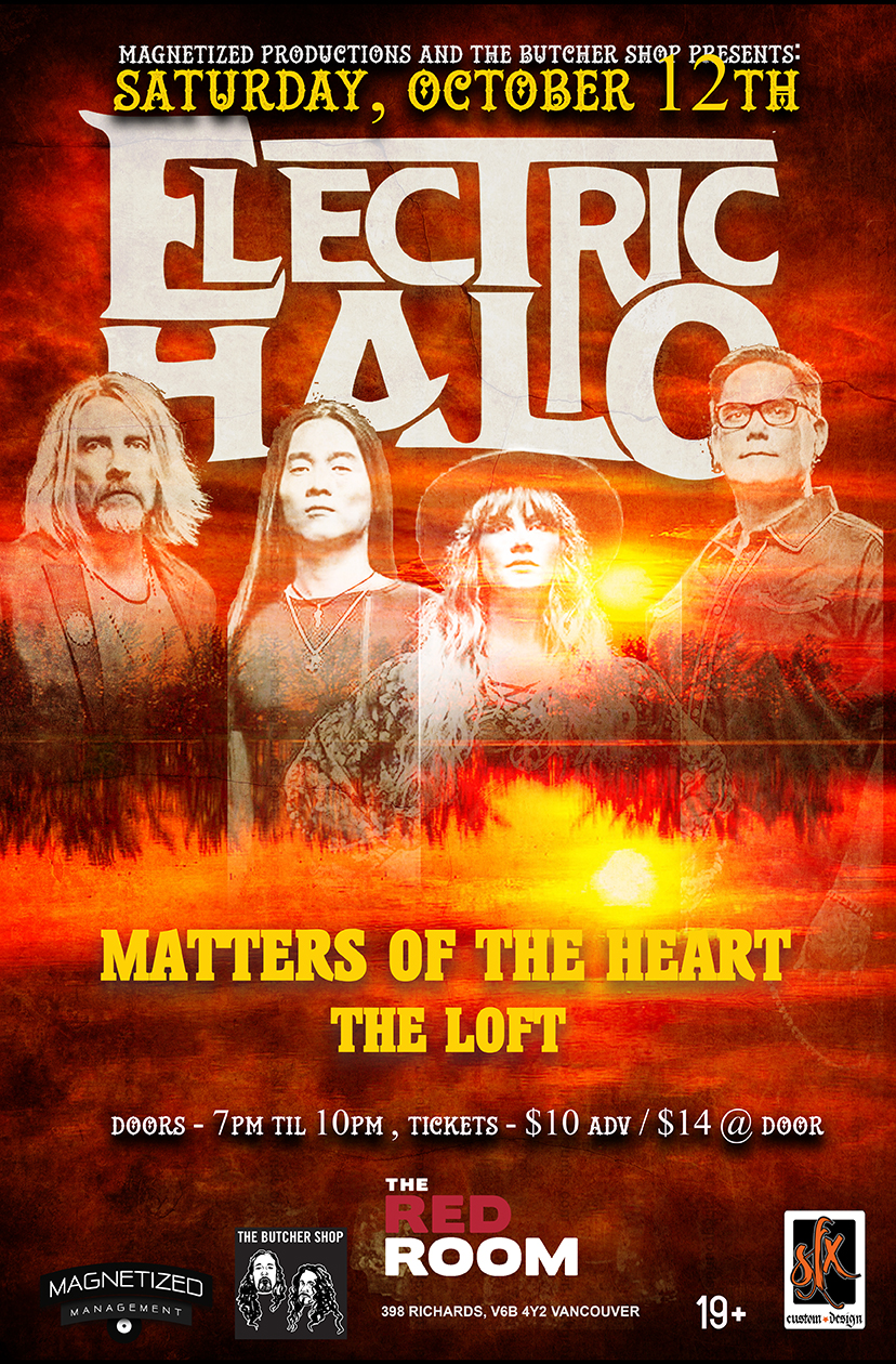 Electric Halo w/ Matters of The Heart and The Loft. Saturday, October 12th @ Red Room, 398 Richards St, Vancouver, BC