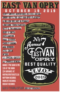 The 7th Annual East Van Opry returns to The Rio Theatre with your favourite local roots and country artists as well as special guests! Featuring:Scott Smith Adventures in Pedal SteelJimmy Roy & The East Van Opry PlayboysA Million Dollars in PenniesThe Lonesome Town PaintersKitty & The RoosterRuby & SmithJack GartonPaul SilveriaShirley GnomeStill CreekM'Girl and some very special guests! Hosted by Charlie DemersTickets available online at https://riotheatretickets.ca/events/12659-east-van-opry-2019or your favourite east van record storesHighlife RecordsRedCat Records (both locations)Neptoon Records
