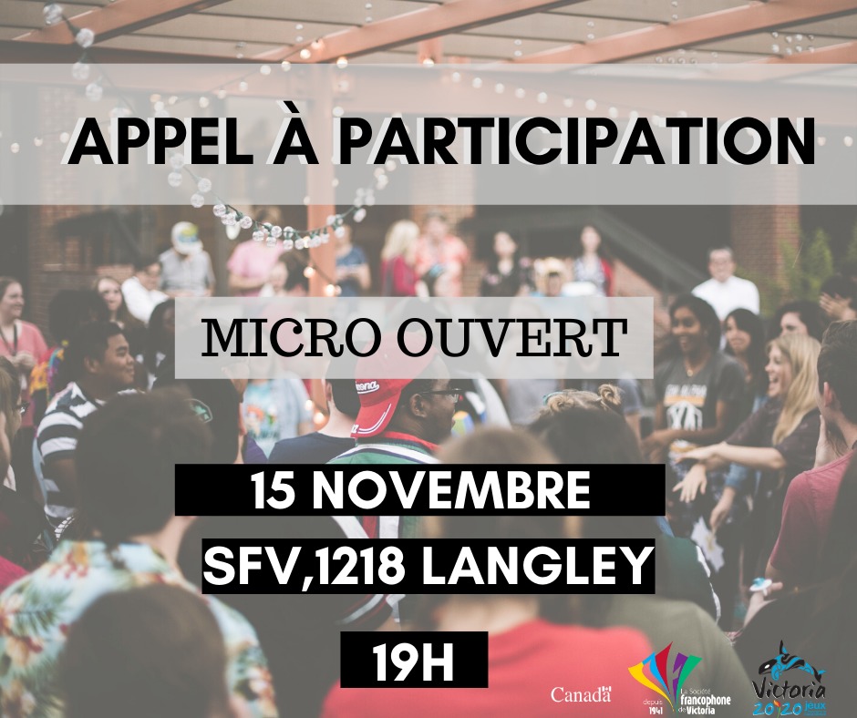 The Open Mic is an opportunity to discover the young francophone and francophile talents of the city of Victoria. Come and attend, the entrance is in the form of pay as you want!