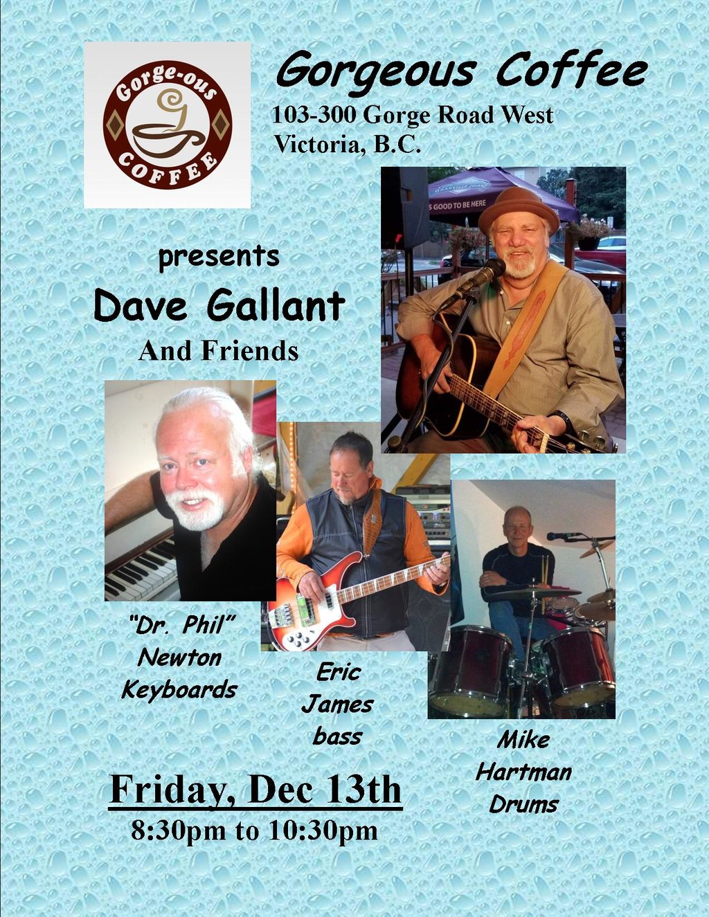 Dave Gallant & Friends: Dave Gallant, “DR. PHIL” NEWTON, Eric James , Mike Hartman @ Gorge-ous Coffee Dec 13 2019 - Feb 8th @ Gorge-ous Coffee