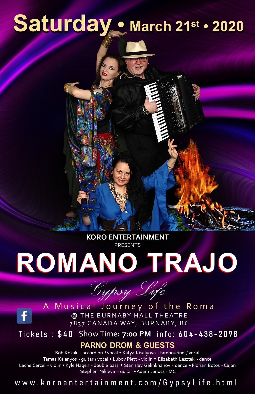 Cancelled - Romano Trajo (Gypsy Life ): Bob Kozak, Lache Cercel, Katya Kiselyova, Kyle Hagen, Tamas Kalanyos, Steven Nikleva, Lubov Plett, Florian Botos, Elizabeth Lesztak, Stanislav Galimkhanov, Adam Janusz, Parno Drom