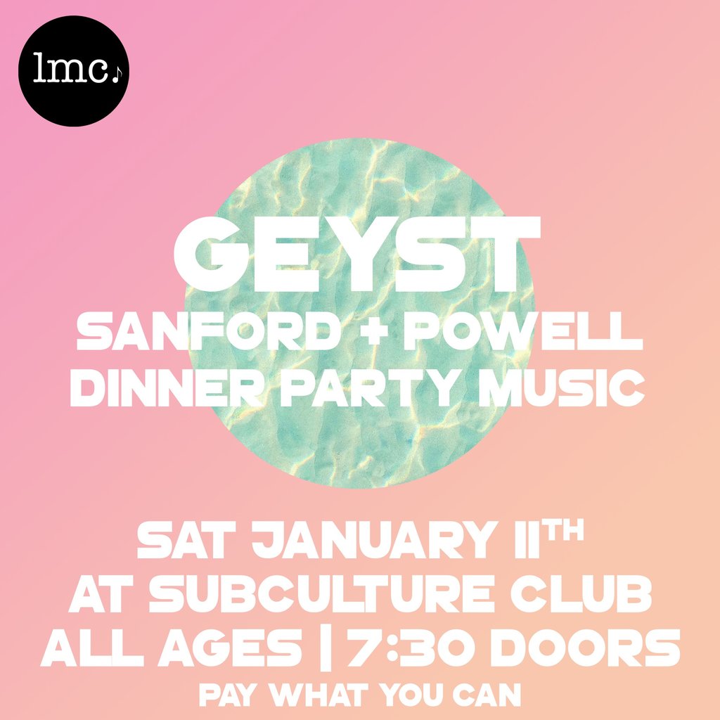 LMC Artist Spotlight no.1: Geyst, Sanford & Powell, Dinner Party Music @ Subculture Club Jan 11 2020 - Mar 23rd @ Subculture Club