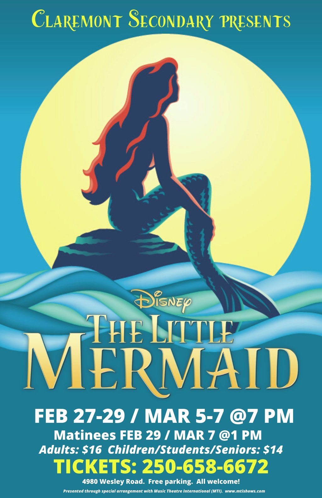 Claremont presents Disney's "The Little Mermaid" this February 27-March 7th.