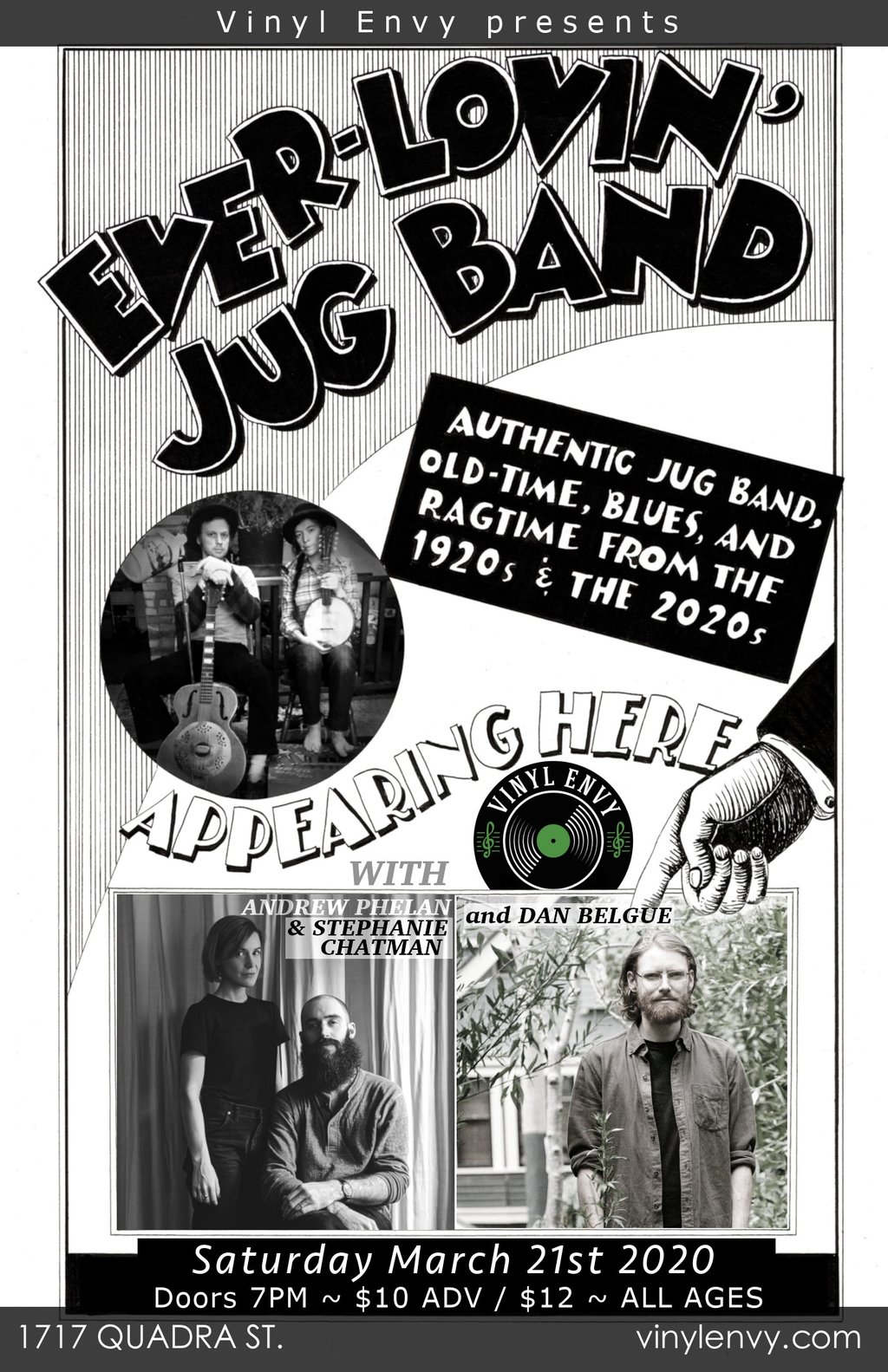 Ever-Lovin' Jug Band  (Ontario Folk Gems~), Andrew Phelan & Stephanie Chatman  (Vancouver, BC), Dan Belgue @ Vinyl Envy Mar 21 2020 - Dec 21st @ Vinyl Envy
