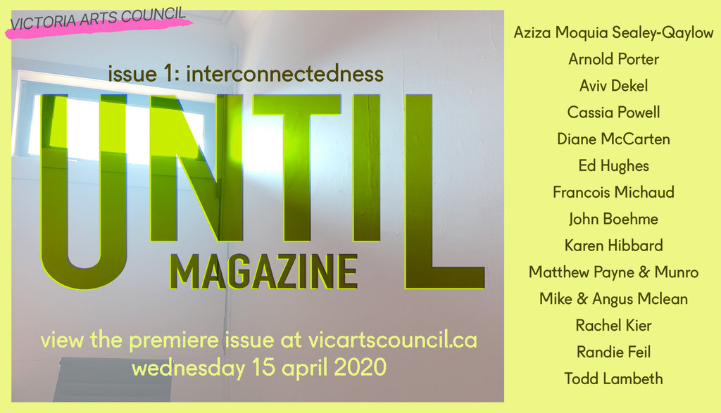 While we're all sheltering in place, self-isolating, quarantining, or however else you'd like to phrase this precarious situation we've collectively found ourselves in, the Victoria Arts Council has begun publishing a digital magazine to continue fulfilling their mandate of promoting the production and presentation of literary, performance, and visual art from Greater Victoria.