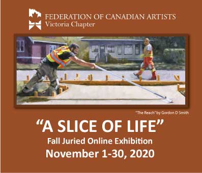 A Slice of Life is a Juried Online Art Exhibition & Sale presented by the Federation of Canadian Artists, and featuring many award winning local Victoria Artists. It is an exploration of the diverse inspiration our artists draw upon in their everyday life. A common scene or moment, that under an artist's eye, develops into a beautiful and sensitive work of art. The Exhibition features 27 such works of art. Come see what our artists are impassioned by!