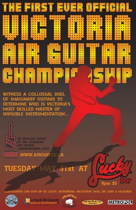 The FIRST EVER OFFICIAL VICTORIA AIR GUITAR CHAMPIONSHIPS! The winner will become Vic's first ever official champ and receive a cash prize! There is NO ENTRY FEE to compete, and there are sign up sheets at Lucky, Backstage Pass and Long & McQuade.