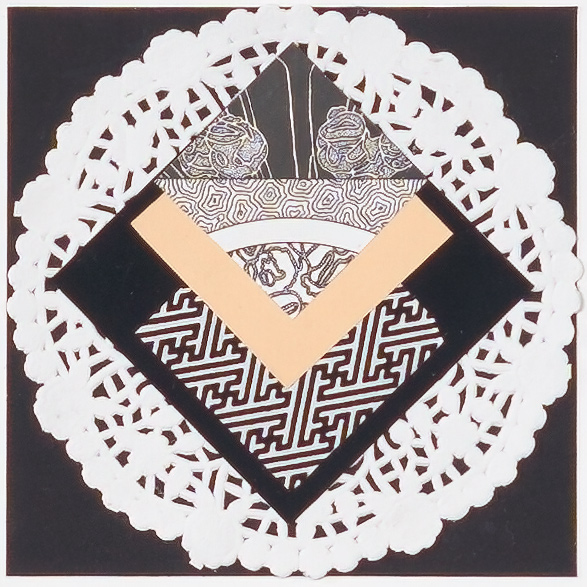 "I especially enjoy making collages with Japanese papers, and for the past year have envisioned a collection of banners made of long, delicate and whispery sheets floating gracefully from bamboo rods and incorporating the iconography of the salmon image. Ultimately however, the properties of the paper itself dictated how the design should go: its delicacy or sturdiness, its dimensions, pattern and colour, all had final say in what I made.