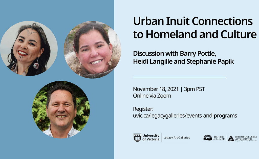 Join Ottawa-based artist Barry Pottle and cultural worker Heidi Langille alongside Victoria-based Stephanie Papik as they discuss their creative practices, connections to homeland, and what it means to be Urban Inuit. Both Barry and Heidi see themselves as cultural ambassadors and contribute to a thriving Inuit community in Ottawa. Stephanie is the Director for Strategic Integration of Indigenous Knowledge, Cultural Safety and Humility with BC Emergency Management.
