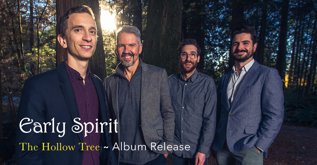 Early Spirit celebrate the release of their sophomore album, ‘The Hollow Tree’! The album features the band members Gabriel Dubreuil (violin), Ben Kelly (percussion), Aidan Goheen (bass) and Jay Knutson (guitar and vocals) along with stellar guests François Houle, Andy Hillhouse, Geoffrey Kelly, Michelle Campagne and William Chernoff.