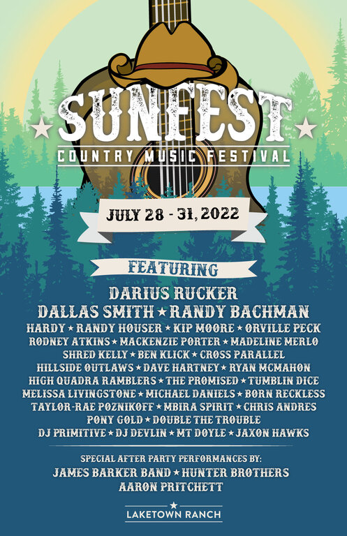 Sunfest Country Music Festival returns to beautiful Lake Cowichan, BC July 28 to 31, 2022.