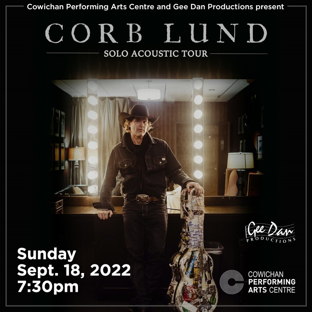 The Cowichan Performing Arts Centre and Gee Dan Productions are proud to present Corb Lund: The Solo Acoustic Tour on Sunday, September 18 at 7:30pm. Tickets are $49.50 regular and $124 for VIP, which includes an intimate pre-show acoustic performance with Corb Lund and commemorative merch.
