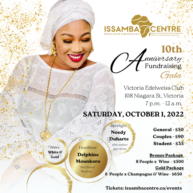 DRESS CODE: White and GoldFacebook Event: https://www.facebook.com/events/5218947048227570www.issambacentre.ca/event