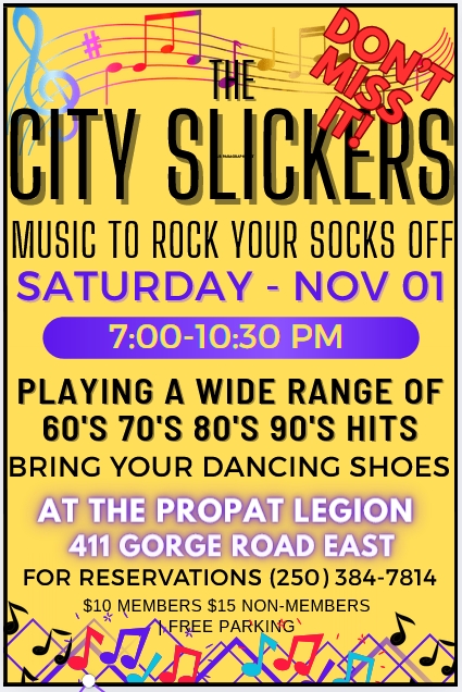 Sat. November 1st 2025 Pro Patria Legion Victoria BC $10-$15