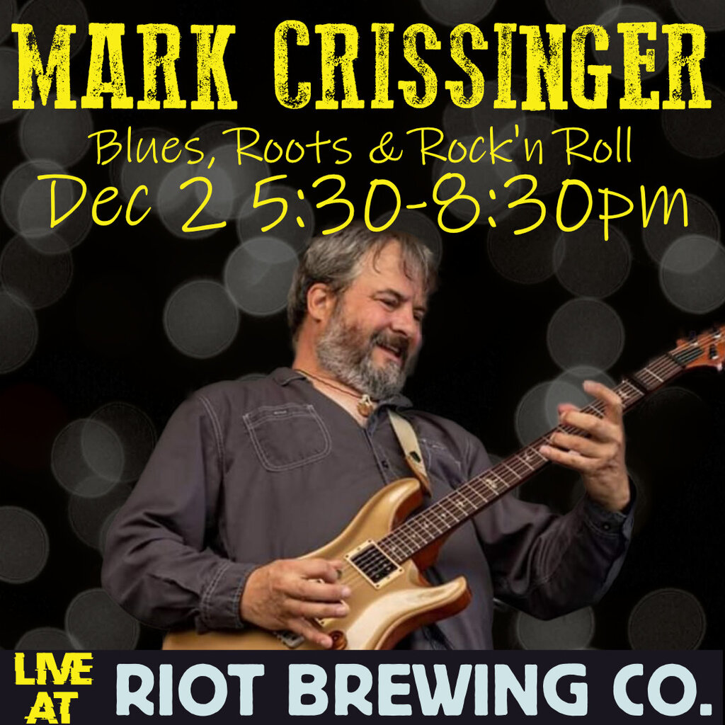 Live Blues: Mark Crissinger @ Riot Brewing Co. Dec 2 2022 - Dec 22nd @ Riot Brewing Co.