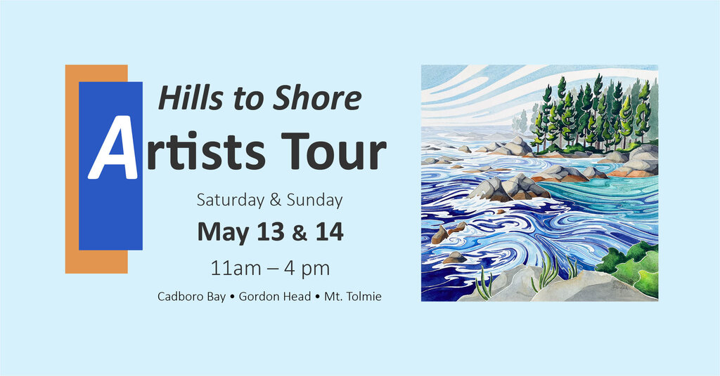The annual Hills to Shore Artists Tour is Sat. and Sun. May 13 and 14, 11 am to 4 pm. This free, self-guided tour on Mother’s Day weekend features 14 studios and 20 artists in Gordon Head, Mt. Tolmie and Cadboro Bay. For a map visit the website at https://www.hillstoshoreartists.ca/ or follow us on social media.
