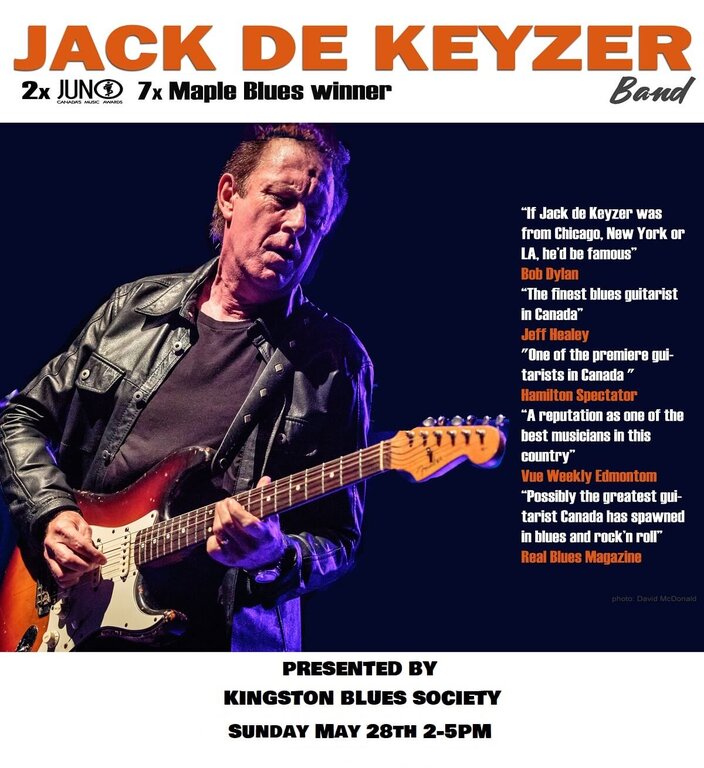 Kingston Blues Society presents JUNO Award-winning and seven-time Maple Blues Awards winner, Canadian blues legend Jack deKeyzer, live in The Standeasy at R.C.H.A. Club. Early show! 2:00 pm start.