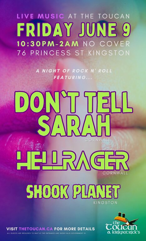 Don't Tell Sarah and Hellrager join Kingston's own Shook Planet for a night of high-octane rock and roll!