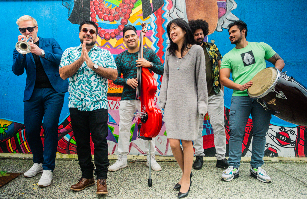 Juno-nominated Mazacote is a hard-hitting, six-piece world/Latin band with deep roots in the music of Nicaragua, Mozambique, and Colombia. Inspired by Afro-Caribbean percussion and tropical party sounds, they play brass-heavy Latin dance beats with a socially conscious message. Mazacote features powerful vocals combined with driving AfroCuban percussion and brassy mambos. They come out swinging hard, introducing their own take on some of salsa’s hardest grooves. Mazacote IS a Latin dance party!