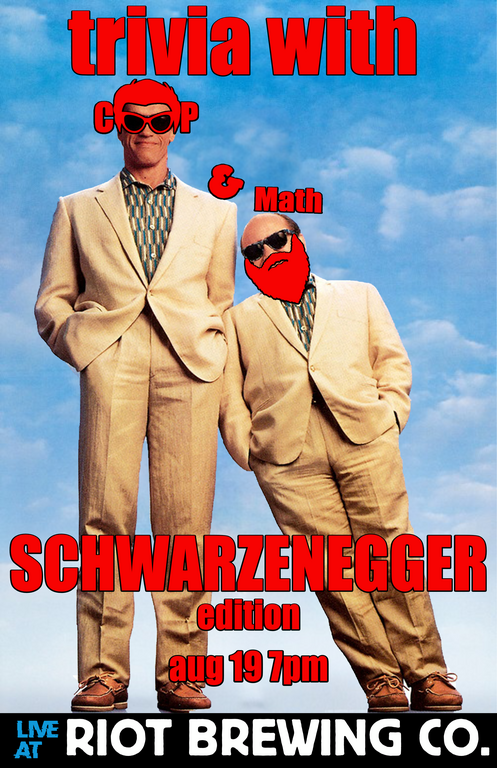 Trivia! With Coop and Math: Schwarzenegger - Mar 22nd @ Riot Brewing Co.