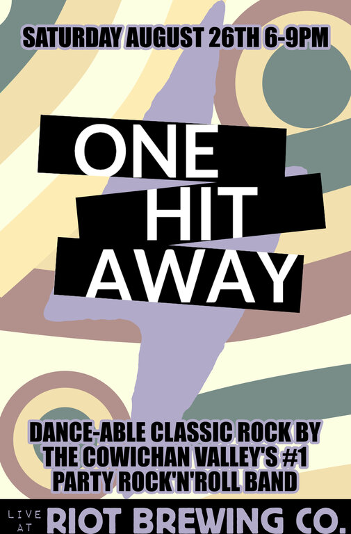 Riot Brewing Co. welcomes Cowichan Valley's #1 good time rock n' roll band! Playing roots, punk, rock, and everything in between, this fantastic foursome is ready to play what you want to hear. Join us to dance and sing the night away with One Hit Away. Call Riot at 250-324-7468 for reservations