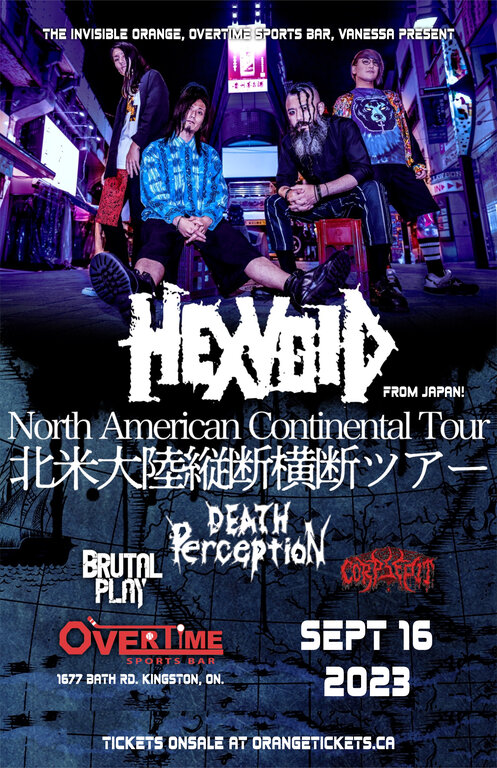 Hailing from Japan Hexvoid's ferocious and fun blend of Hardcore Punk will be unleashed upon Kingston on September 16th at Overtime Sports Bar! Joining them on this insane night will be Modern Death Metal Tyrants Death Perception from Hamilton, Hardcore Masters Brutal Play from Ottawa, and Pummeling Death Metal Crushers Corpsepit from Ottawa!