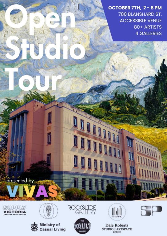 Join us this fall for another unforgettable open house experience! 780 Blanshard is opening its doors to the public on Saturday, October 7 from 2:00-8:00. Don't miss this opportunity to visit over 80 artists and 4 galleries all under one roof in Victoria's largest visual arts hub! There will be gallery exhibitions at Rockslide Gallery, The Vault Gallery, and The Ministry of Casual Living, along with interactive art by Monkey C Interactive and NightShade LightPlay, performance art by Open Actions, Live music at Haus of Owl, and SO MUCH MORE!!