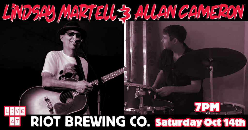 Riot Brewing Co. welcomes the accomplished and eclectic Lindsay Martell and Allan Cameron to our lounge, for a night of rock, country, folk, and blues, with maybe a bit of funk and soul thrown in for good measure. Let them wow you with soulful originals, with a bit of something for everyone. Call to make reservations 250 324 7468