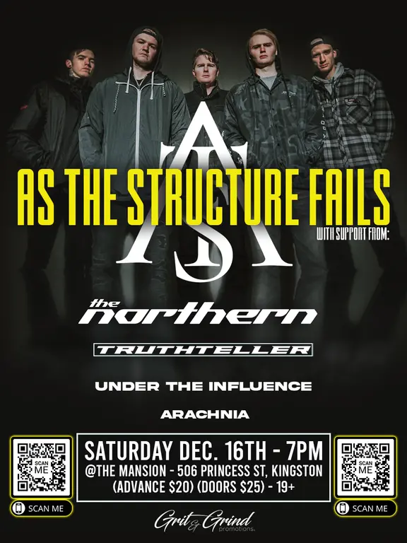 As The Structure Fails, Northern, TruthTeller, Under The Influence, Arachnia @ The Mansion Dec 16 2023 - Feb 5th @ The Mansion