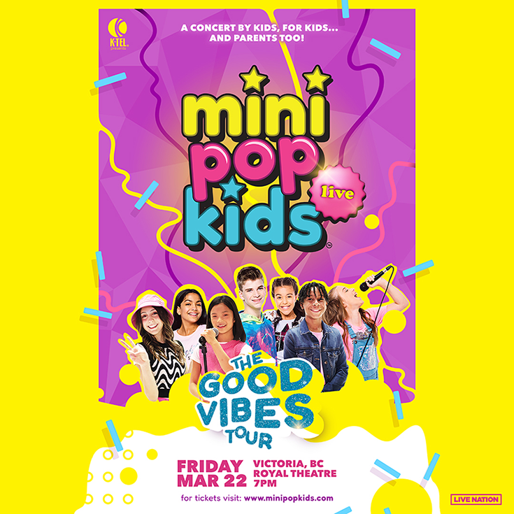 Get ready for an unforgettable family-friendly experience as Mini Pop Kids Live bring their GOOD VIBES TOUR to cities all across North America!  These rising stars are here to turn up the fun and keep the good vibes rolling as they perform the biggest hits that the whole family will enjoy.