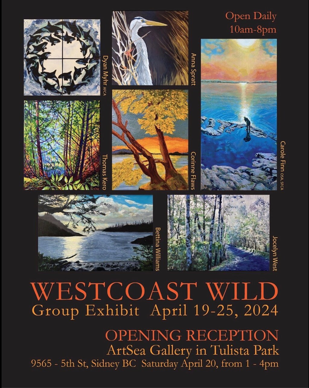 West Coast Wild Exhibit ~ Come and join us for our second annual group exhibition, taking place the week of April 19-25, 2024 at the ArtSea Gallery in Tulista Park, 9565 Fifth Street, Sidney, B.C.