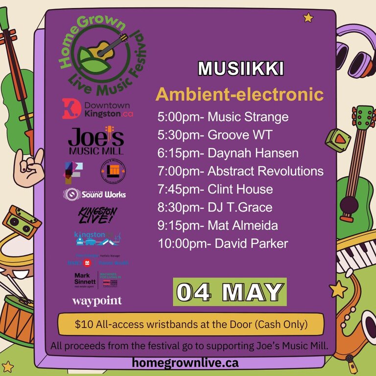 HomeGrown Live Music Festival: Music Strange, Groove WT, Daynah Hansen, Abstract Revolutions, Clint House, DJ T.Grace, Mat Almeida, David Parker @ Musiikki Café & Whiskey Bar May 4 2024 - Feb 5th @ Musiikki Café & Whiskey Bar